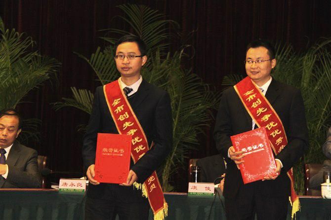 我黨支部副書記李紅兵(左)在頒獎典禮上領(lǐng)取榮譽(yù)證書